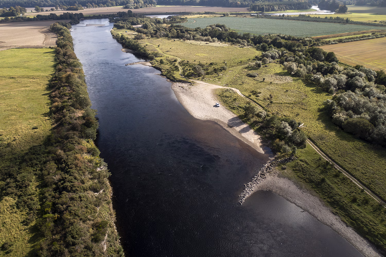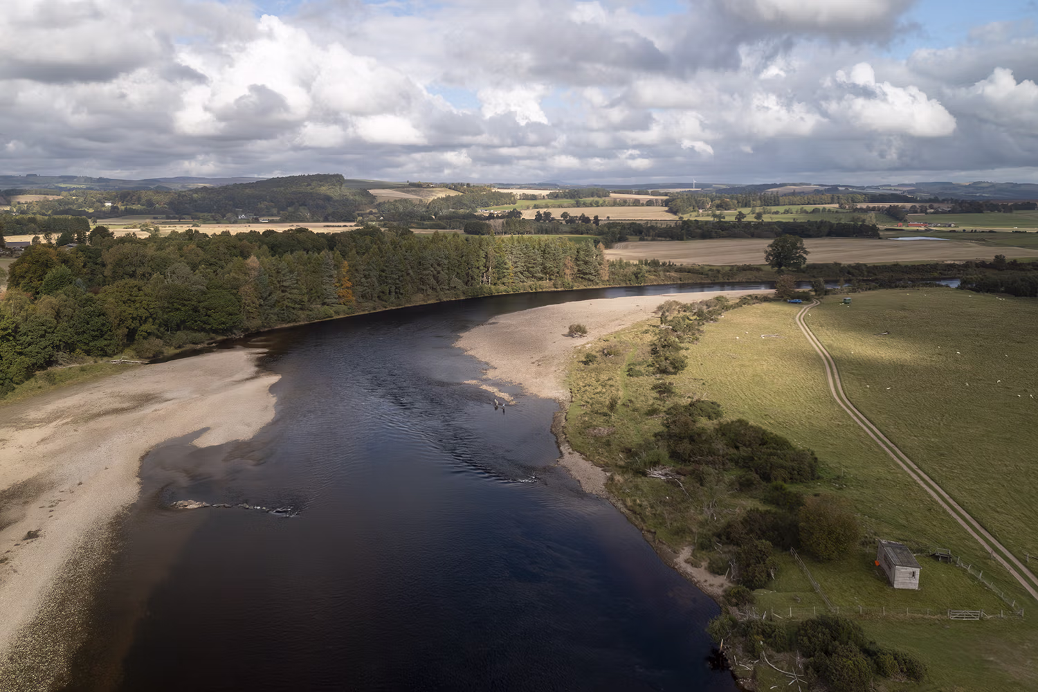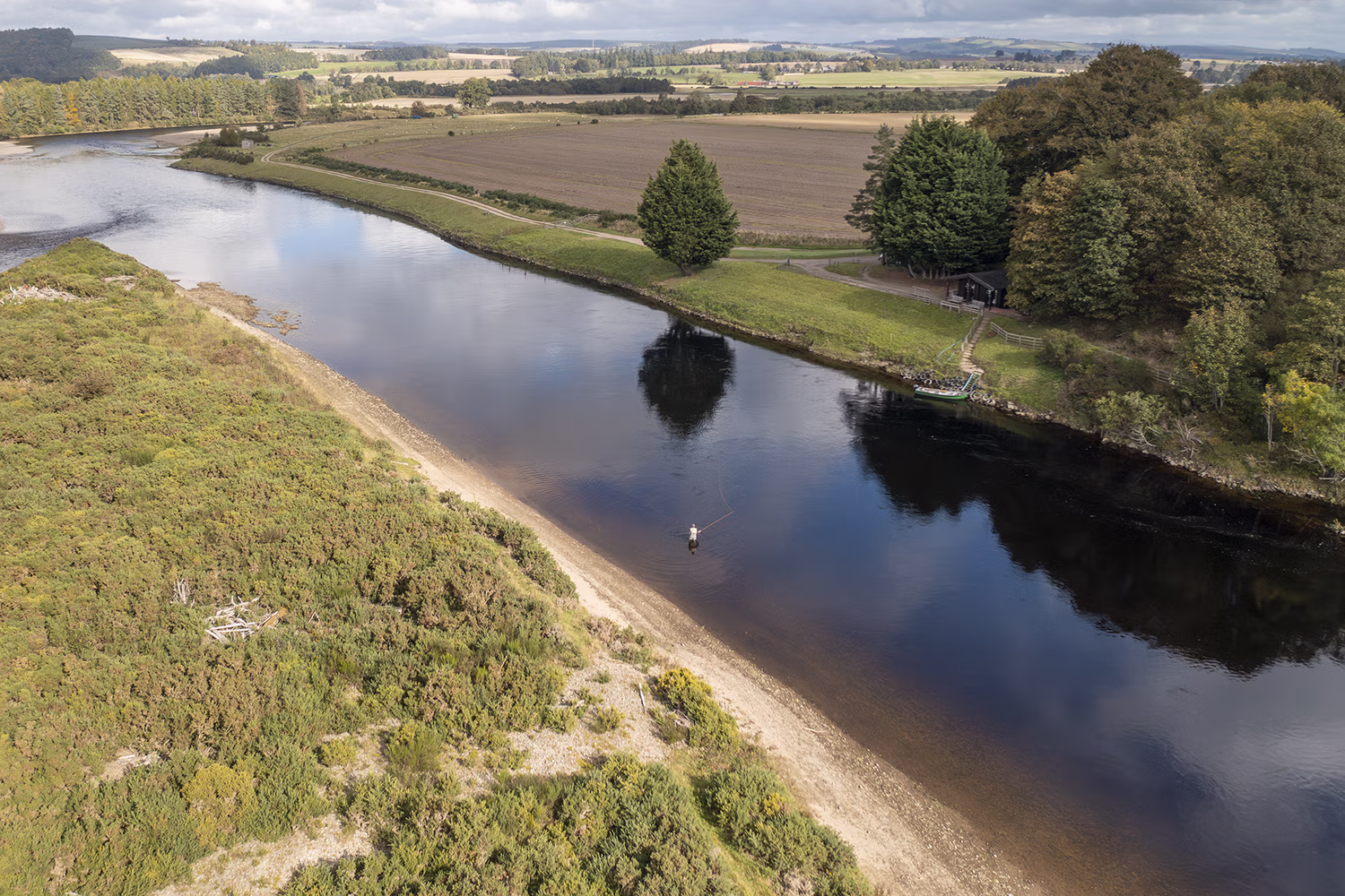 The top of the beat meets the Upper Delvine fishing, and the excellent Boatlands Pool can be fished from both banks with fly and spinner.